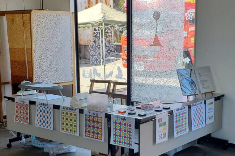 小さく折りたたんだ和紙を、カラフルな染料インクにひたして、和紙を染める体験です。